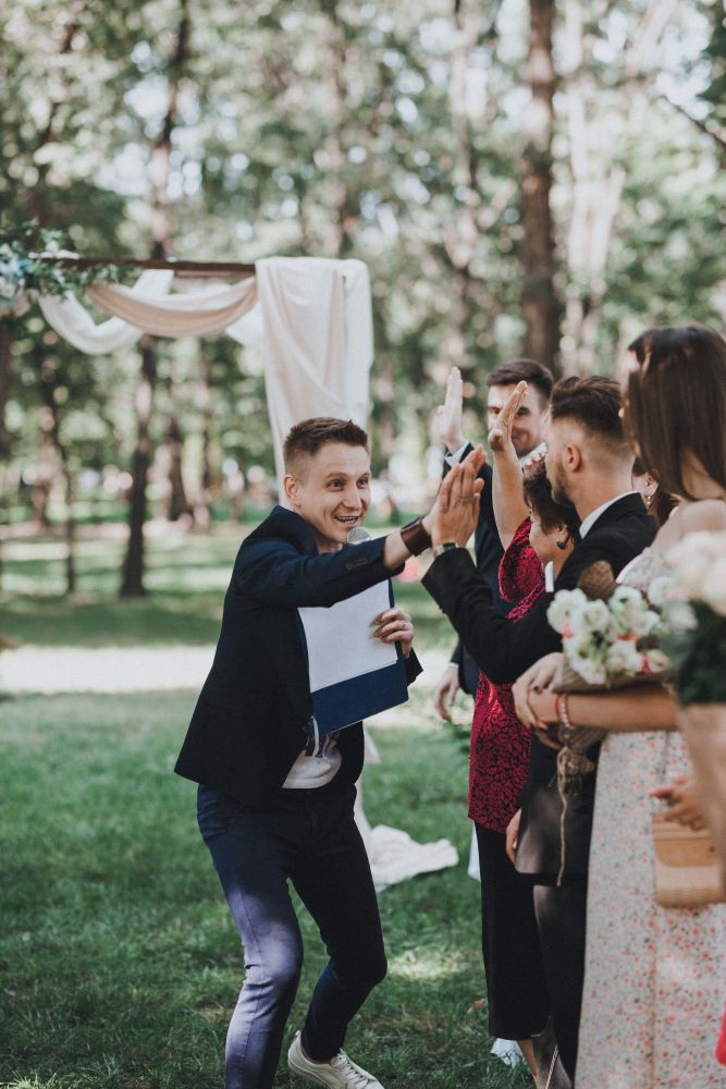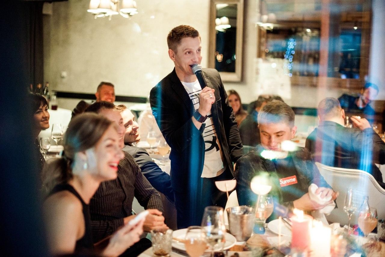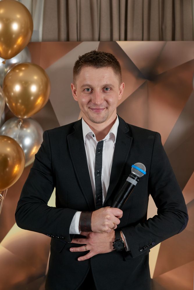 Перед вами не просто ведущий, но еще и Stand Up комик и профессиональный сценарист в "Студия Квартал 95". Поэтому ваша свадьба пройдет по индивидуальному сценарию и весело! - Пятикратный победитель "Рассмеши комика" на телеканале ИНТЕР и 1+1;- Участник "Лига Смеха" в составе команды "Километр Кимоно" на телеканале 1+1;- Резидент stand up проекта "Гуднайт клаб" на телеканале 1+1;- Участник "Бойцовского клуба" студии Квартал 95 на телеканале К1 и ТЕТ;- Участник "Comedy баттл" на телеканале ТНТ;