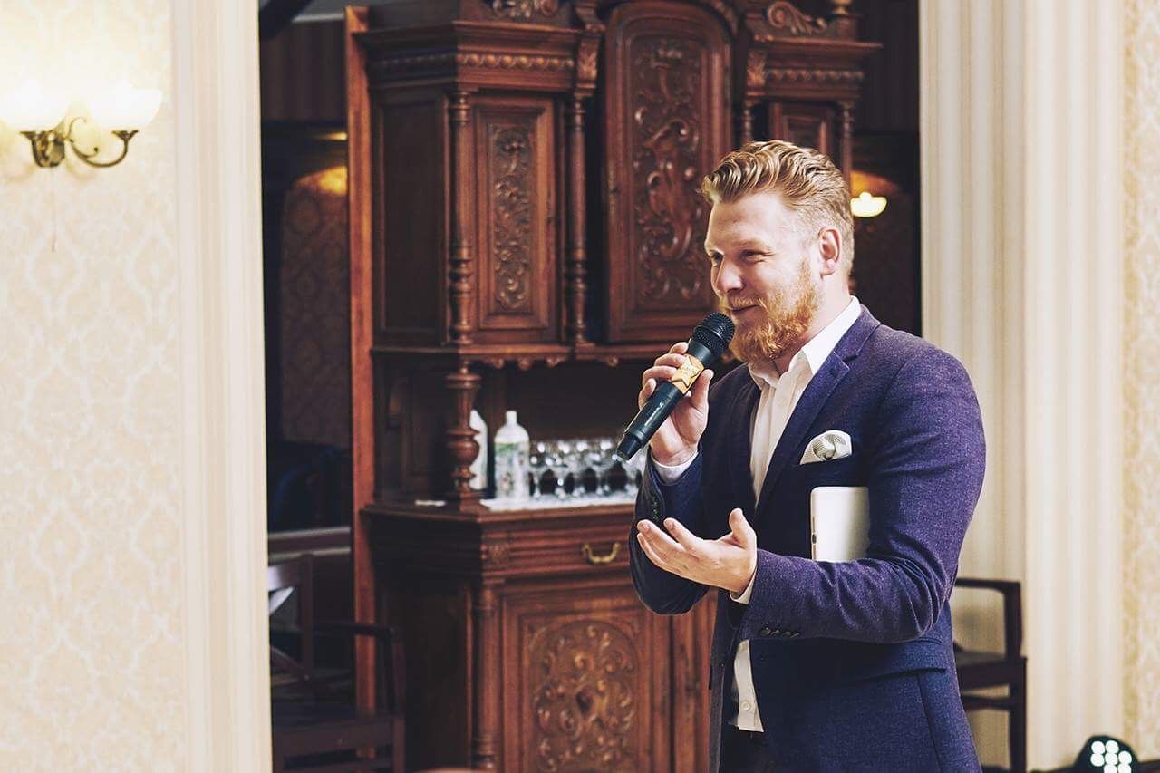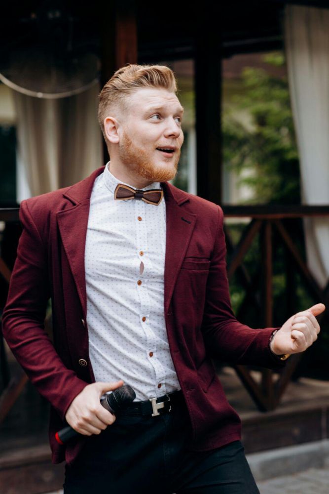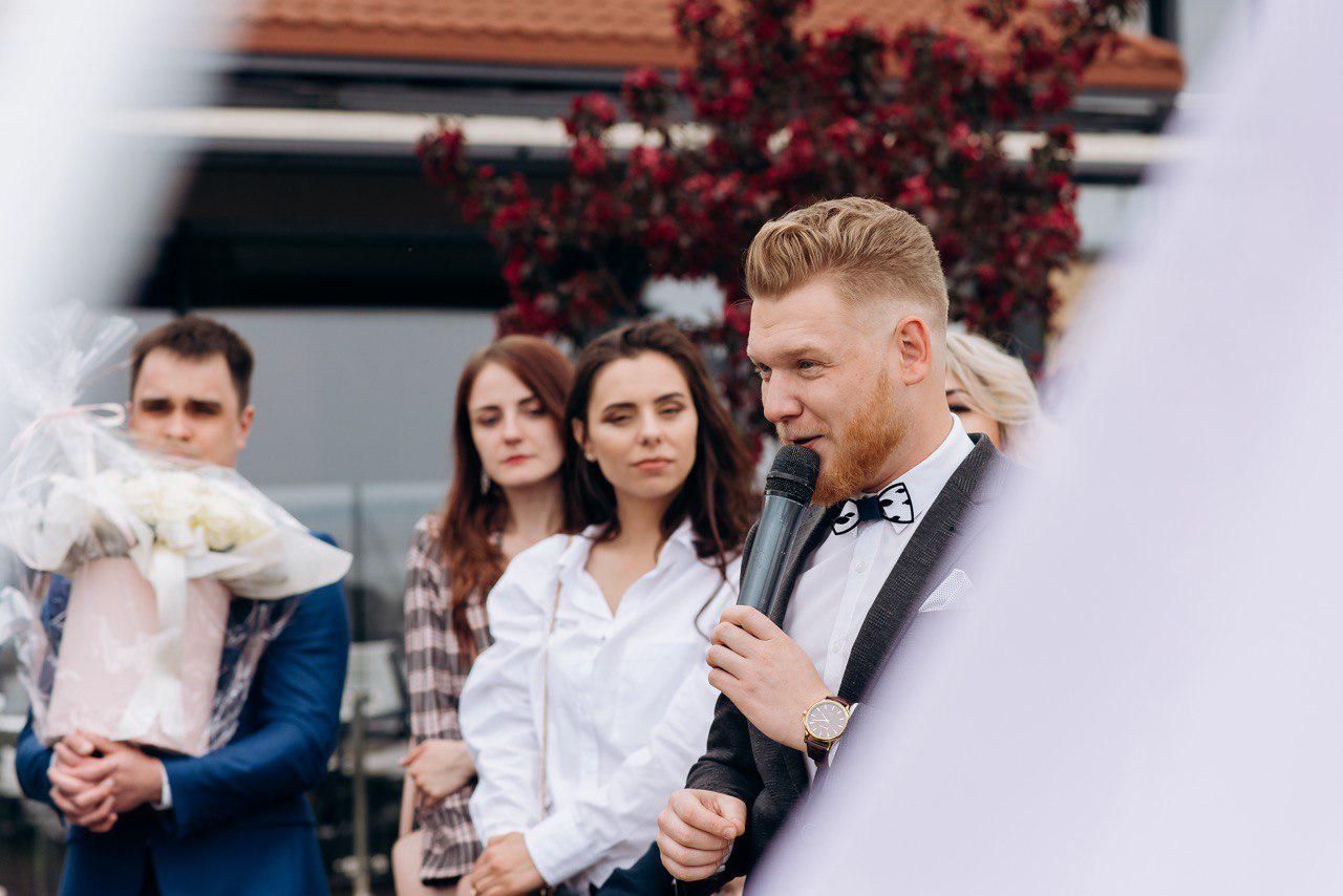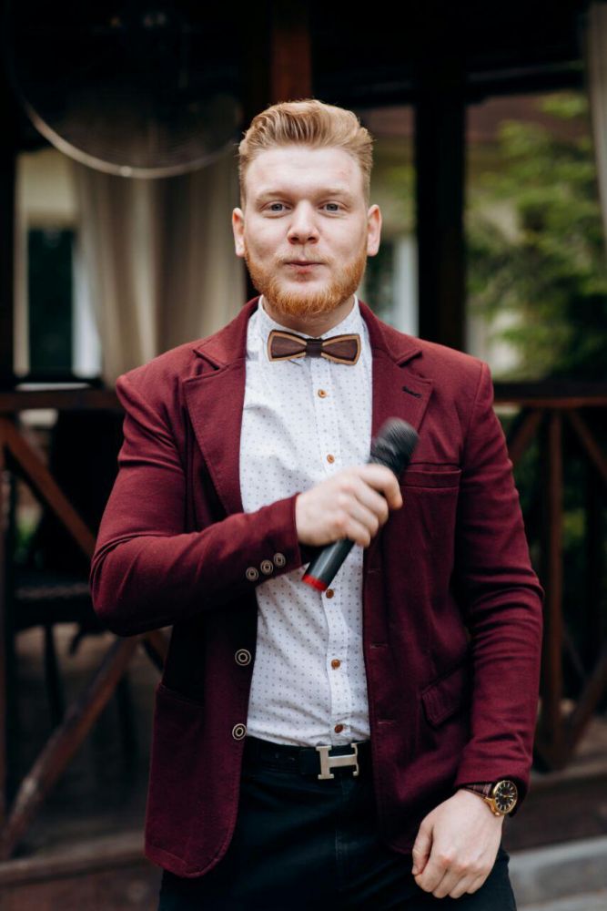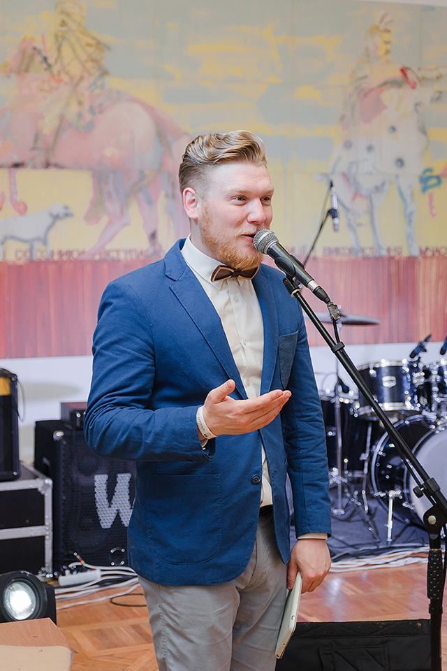 Привіт. Мене звати Артем Євтушенко за освітою я інженер та економіст, але досвіду в цих професіях маю не так багато, чого не скажеш про проведення заходів. Я працюю ведучим вже більше 10 років. Вечірки, дні народження, корпоративи, фестивалі, конференції, концерти та звісно ж весілля (про які зараз і піде мова) Я попереджую, що не буду називати вас лебідем та лебідкою, голубом та голубкою, жодних кораблів під назвою "кохання" в морі під назвою "життя". Я не буду змушувати нікого з гостей на заході позбуватись одягу або ж одягати на себе інший. Моє завдання зробити так, щоб кожен із присутніх міг повністю розслабитись, вдосталь насміятись, та в потрібні моменти задуматись. Я не маю готового сценарію для вашого весілля, та в той же час маю багато ідей, якими я із задоволенням поділюсь, і ми разом з вами створимо незабутню подію.