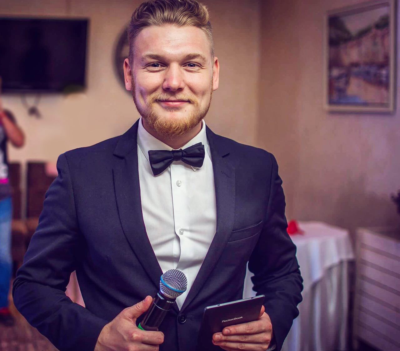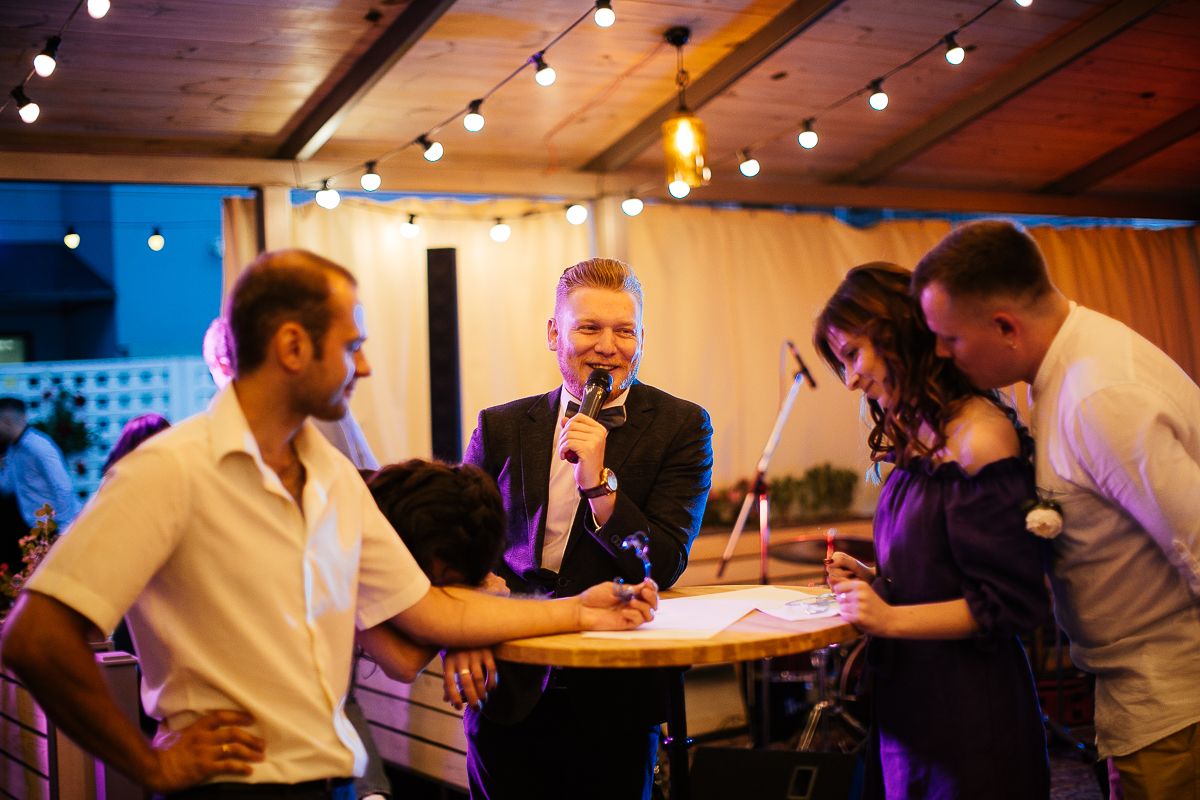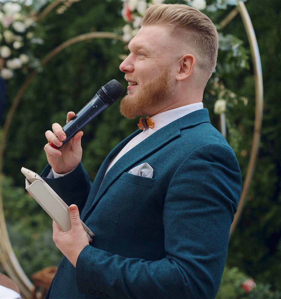 Привіт. Мене звати Артем Євтушенко за освітою я інженер та економіст, але досвіду в цих професіях маю не так багато, чого не скажеш про проведення заходів. Я працюю ведучим вже більше 10 років. Вечірки, дні народження, корпоративи, фестивалі, конференції, концерти та звісно ж весілля (про які зараз і піде мова) Я попереджую, що не буду називати вас лебідем та лебідкою, голубом та голубкою, жодних кораблів під назвою "кохання" в морі під назвою "життя". Я не буду змушувати нікого з гостей на заході позбуватись одягу або ж одягати на себе інший. Моє завдання зробити так, щоб кожен із присутніх міг повністю розслабитись, вдосталь насміятись, та в потрібні моменти задуматись. Я не маю готового сценарію для вашого весілля, та в той же час маю багато ідей, якими я із задоволенням поділюсь, і ми разом з вами створимо незабутню подію.