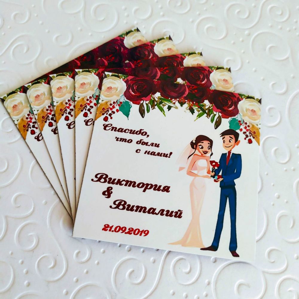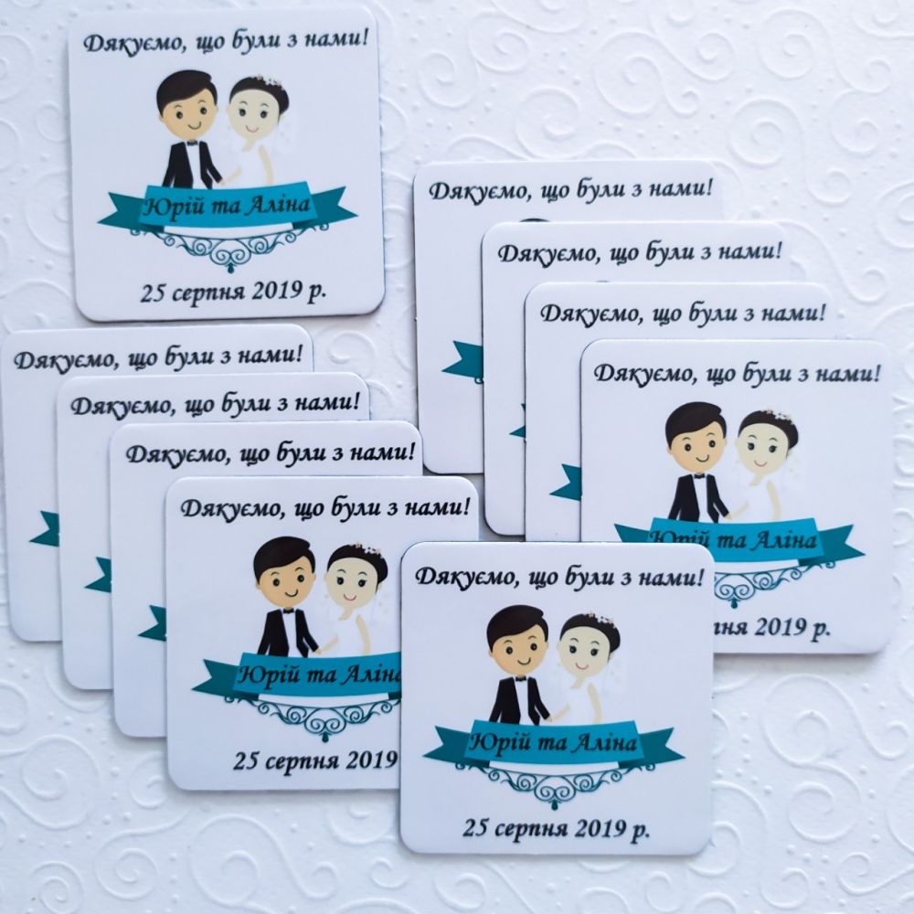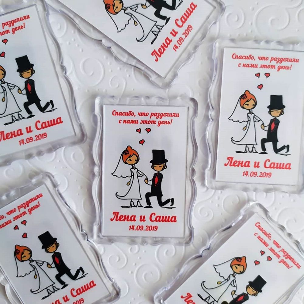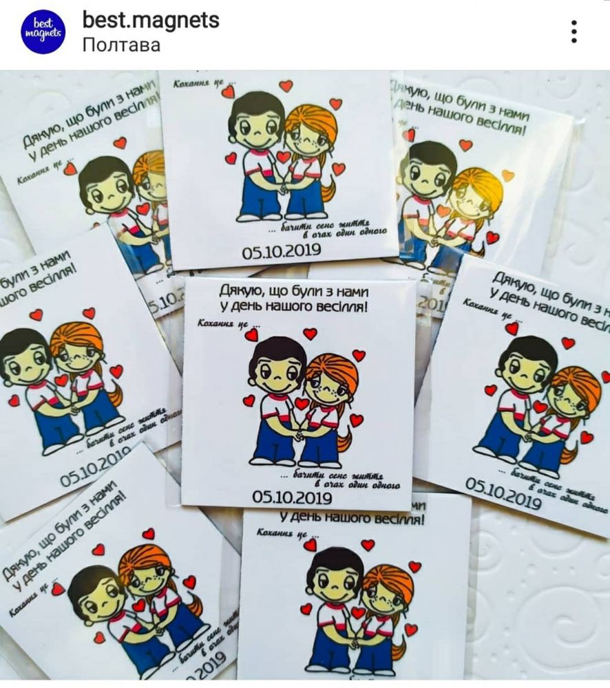 BestMagnets - изготовление свадебных магнитов на холодильник. Где использовать: - выигрыш в конкурсах; - подарки гостям на свадьбе; - как пригласительный. На магните можно изобразить как фото молодоженов, так и забавные картинки с датой торжества и именами. Есть множество вариантов оформления, возможен индивидуальный дизайн. Доставка по Украине.