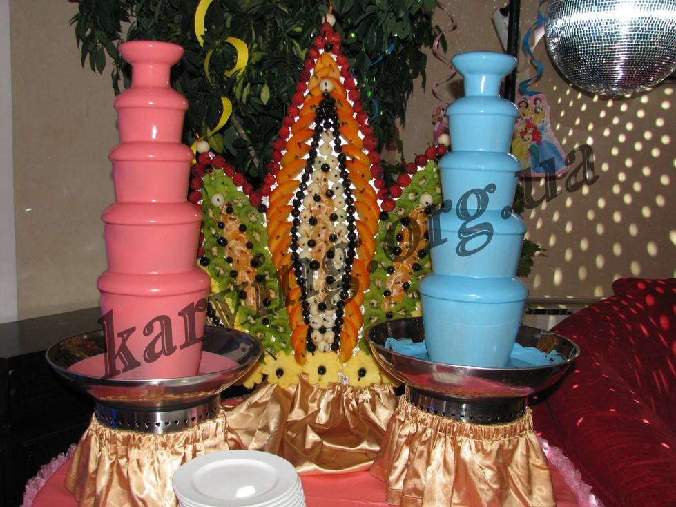 Аренда шоколадных и винных фонтанов, сладкая вата на детские праздники, букеты из фруктов, карвинг-арбузы, тыквы на Хеллоуин