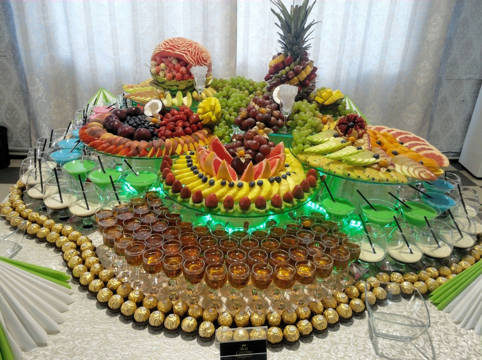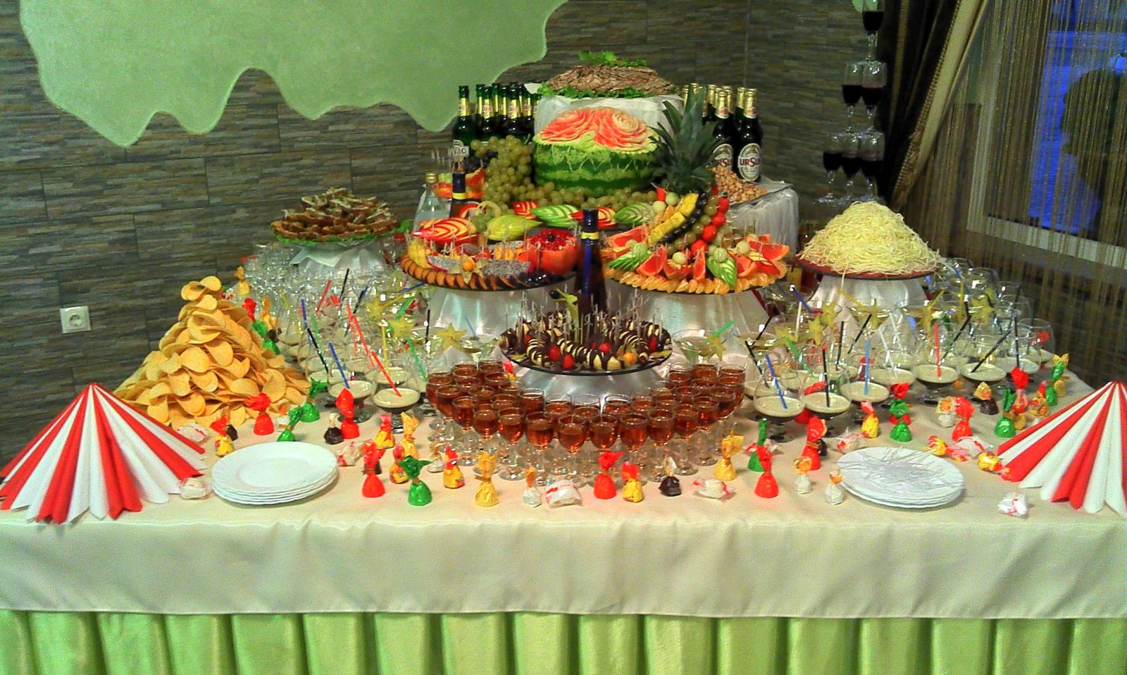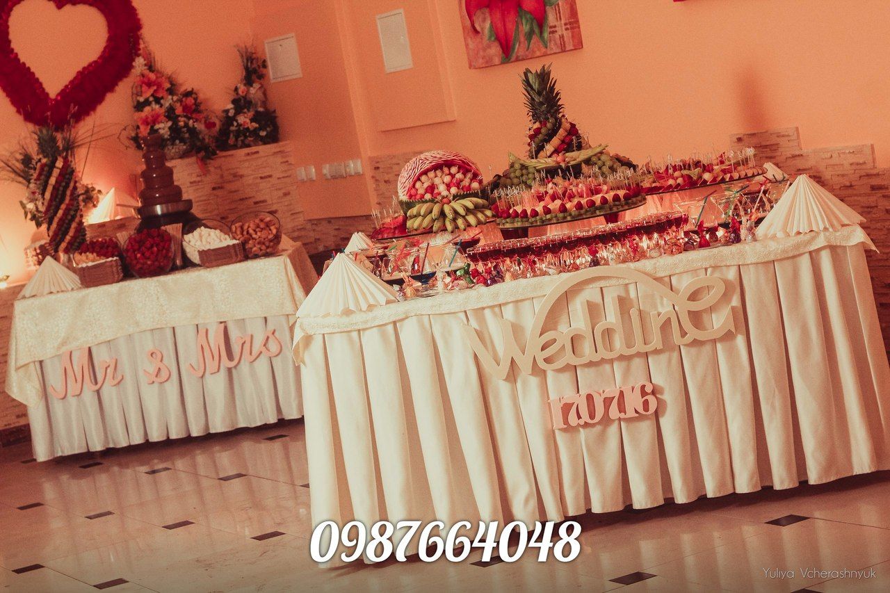 формлення весілля для нас є дуже творчою роботою і робить прикрашання залу особливим і незабутнім, а весільний фуршет і весільні аксесуари доповнюють атмосферу барвистістю і родзинкою. Ми зробимо все для Вас і перетворимо Ваше свято незабутнім, весільне оформлення буде на самому вищому рівні. Професійний весесільний фуршет в ресторані або вдома виглядає дуже красиво та якісно доповнює оформлення весілля. Вражаючи виглядає фуршет з красивии доріжками і композиціями фруктів та овочів. В наші послуги входять: шоколадний фонтан, весільні фуршети, лимонад бар,Канапе-фуршет; кенді стіл, cheese bar; Селянський стіл; Пивний стіл; кава-брейк, піраміда з шампанського, Аренда (прокат) шатра-павильона кремового цвета 7*5 м, столів, посуду. З повагою, Володимир тел.050-911-28-00 098-766-40-48 furshet.cv@gmail.com