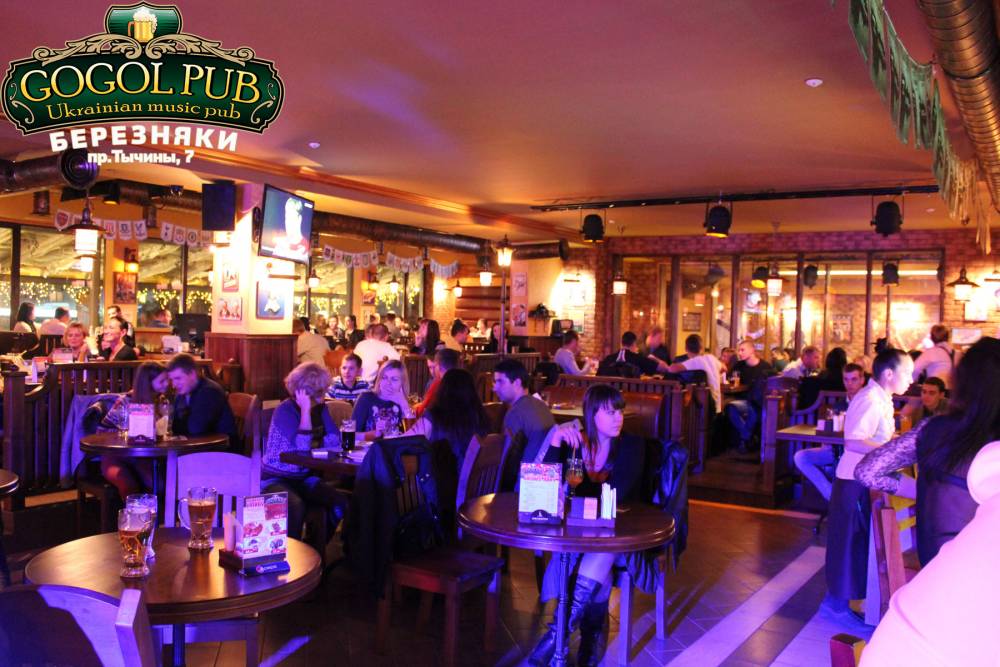 GOGOL-PUB на Березняках – классическое пивное заведение в лучших английских традициях. Уникальность формата заключается в сочетании витающего здесь духа свободы и достойного самых лучших отзывов уровня кухни и сервиса. От классического британского паба нас отличает простота и демократичность, от спорт-бара – возможность чувствовать себя уютно тем, кто не смотрит футбол. Наше меню изобилует закусками, мясом и рыбой; особое внимание уделено специальным блюдам для больших компаний. Но главная наша достопримечательность – это фирменное живое пиво GOGOL, которое особенно приятно пьется в компании хороших друзей! Днем в GOGOL-PUB Гоголь паб можно заглянуть на быстрый и сытный обед, а когда намечается очередная футбольная трансляция, собирайте друзей и приходите поболеть за любимую команду! ;)