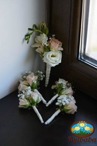 Мы предлагаем для вас следующий спектр услуг: - свадебный букет невесты; - бутоньерка жениха; - бутоньерка свидетеля и браслет свидетельницы; - оформление зала цветами; - оформление стола молодожонов и гостевых столов; - выездная церемония; - украшение машин на свадьбу; - украшение бокалов, бутылок шампанского и подарочных коробок цветами; - подарочный букет цветов; - композиции из цветов; - многое другое. Доставка букетов и композиций из цветов по Киеву и Киевской области.