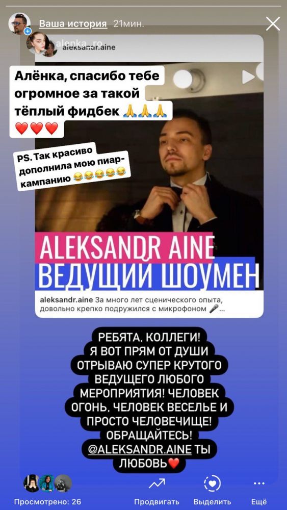 Здравствуйте дорогие, меня зовут Александр и обычно микрофон у меня! ;) Я ведущий и шоумен, с опытом +10 лет, выступал на сценах в +10 стран. И если Вы в поисках ведущего, который сделает Вашу свадьбу одним из самых ярких праздников - сейчас самое время пикнуть мне куда-нибудь в месенджер или позвонить))) Почему? (!) При бронировании даты в период карантина, Вы получаете реальную скидку на услуги ведущего -50%!!!!!! (цена вырастет после окончания карантина и сейчас указана со скидкой) Итак, что входит: - Первоклассное проведение свадьбы и церемонии. - Профессиональный подход в подготовке, с заполнением свадебных анкет. - Проработка индивидуального сценария - всё для Вас и всё о Вас! Супер-современная программа! - Помощь при подборе подходящей музыки на каждую традиционную часть свадьбы. - Подбор ритуалов и их интерпретаций. Одни и те же ритуалы можно провести классически или на современный лад, к примеру, есть 5 непохожих друг на друга способов «бросить букет» - Рекомендации по подготовке и организации свадьбы: помощь, подсказки, проверенные контакты. - Провожу мероприятие на 3х языках, в случае иностранных гостей и разной аудитории. - Отличная цена на звуковое сопровождение и услуги профессионального диджея. И многое другое!!! Давайте продолжим общение в месенджере или просто позвоните, познакомимся! ;)
