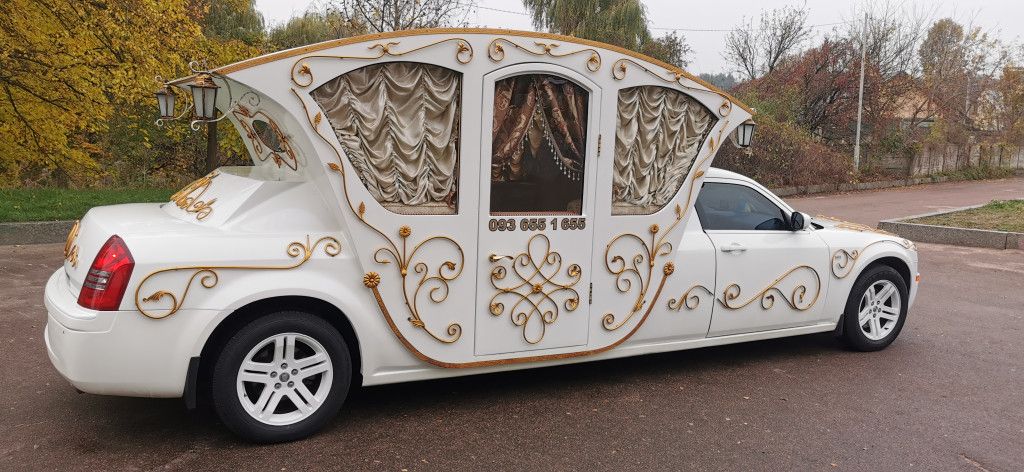 Лімузин карета на базі лімузин CHRYSLER 300C Авто на весілля королівської краси Довжина — 6 метрів.Салон —в стилі барокко з парчовими лабрікенами та кришталевим посудом та кришталевою люстроюКількість місць — 6+1.Ціна — 75-100 ум.од за годину прокату - мінімальне замовлення - 5 годин http://limopark.com.ua/limuzin-kareta-chrysler-300c-html Лімузин Ужгород лімузин Мукачево лімузин Берегове лімузин Буштина лімузин на весілля