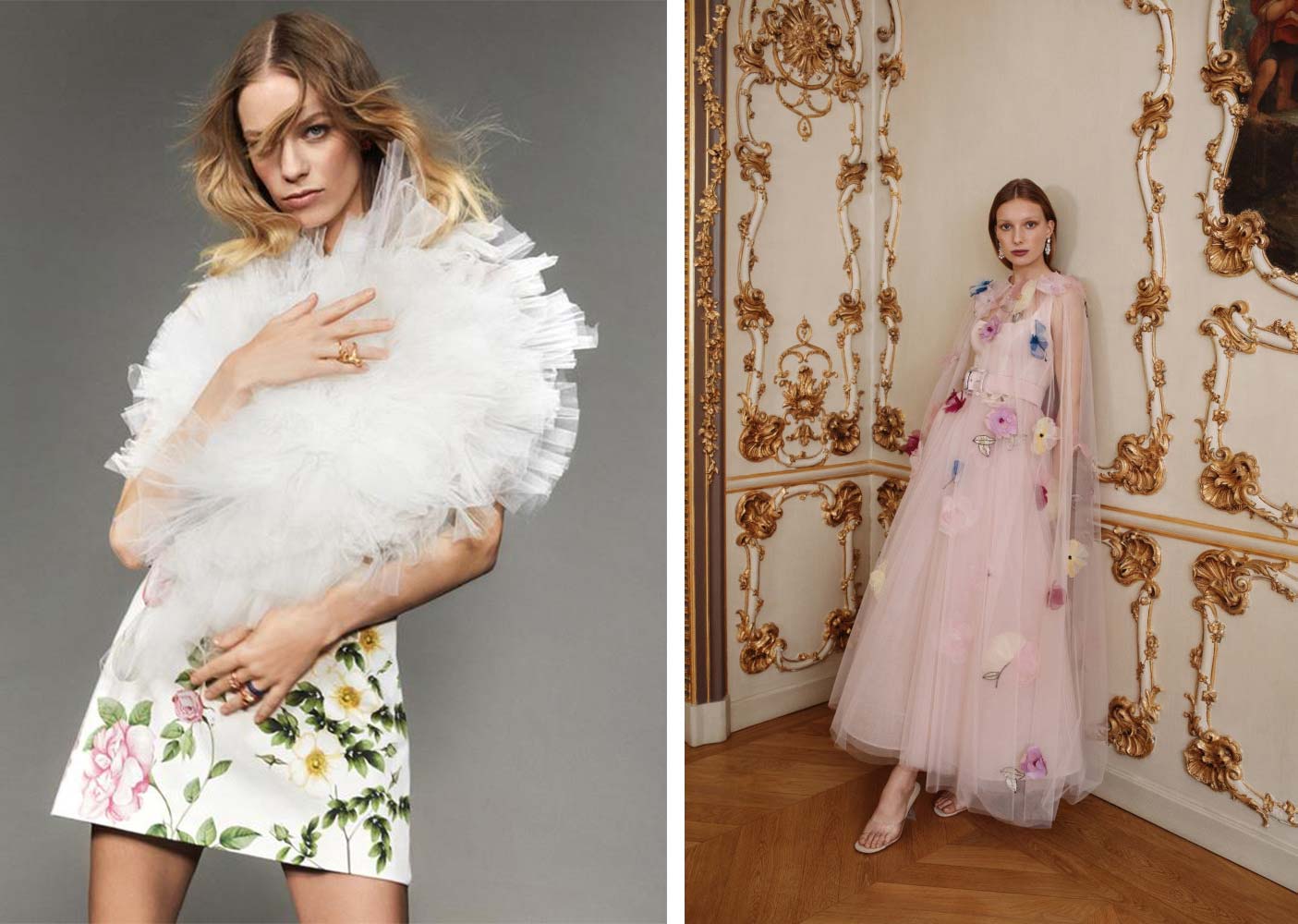 Всемирно известные бренды Chanel, Alexis Mabille, Oscar de la Renta, Monique Lhuillier и другие представили в своих коллекциях наряды с флористическим декором. Объемные цветы в тон платья, контрастные рисунки по ткани или россыпь цветов на накидках… В любом случае, если платье на роспись будут украшать представители флоры, вы точно будете в тренде. Кроме того, цветы – это всегда демонстрация нежности и трепетности женского образа.