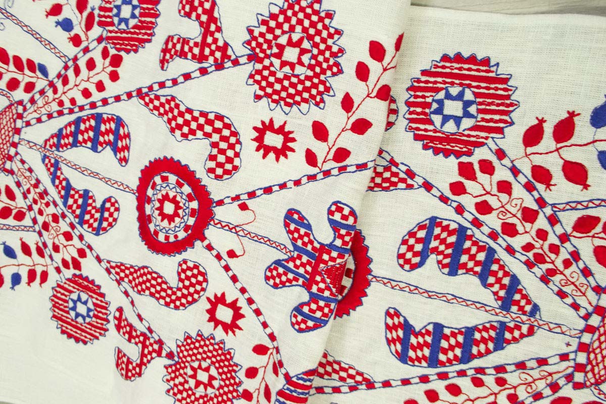 Чаще всего для проведения обряда подбирают льняной аксессуар, вышитый особыми символами и их комбинацией. Это своеобразный «код нации» – послание, в котором скрыто магическое содержание, пожелания и знаки охраны.