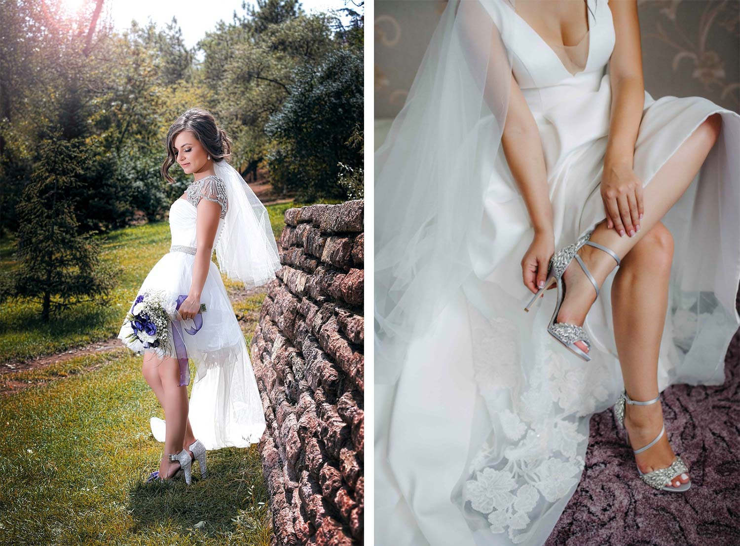 В день свадьбы нужно не только выглядеть шикарно, но и ощущать удобство. Туфли Версаче создают вместе с платьем завершенный образ. Главное соблюдать гармонию. С классическим платьем или платьем в стиле «гламур» отлично сочетаются туфли на высокой шпильке. Бохо или Рустик более сочетаются с лодочками, балетками, обувью на платформе. Лучше обойтись без массивных украшений на обуви, так как они могут повредить платье и создать неудобства.
