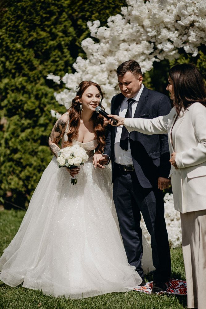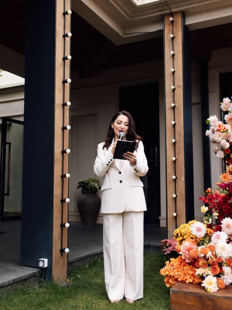 Марі Тесс - ведуча весільних подій та весільних церемоній. Церемоніатор, режиссер. Досвід з проведення та організації календарних свят, виставок, конкурсів, весільних подій, весільних церемоній одруження, корпоративних шоу-програм та презентацій понад 14 років. Проведення українською мовою. У весільній сфері більше 14 років. Мій досвід - більше 300 неймовірних церемоній. Церемоніатор, ведуча весільних церемоній з 2015 року по 2023 і все життя ))) Маю досвід проведення весільних церемоній у документ-сервіс Готово (2022), Новий ЗАГС (2023). Учасник ТОП-100 церемоніймейстрів України. Проведення весільного банкету - європейський сценарій проведення, програма спрямована на камерне сімейне душевне свято (інтерактиви, конкурси, квіз, декілька варіантів сценарію на вибір). Маю своє власне технічне забезпечення свята (dj, апаратура, дим-машина, плазма, холодні фонтани та таке інше). Що входить у вартість послуг «Весільний церемоніатор»: - Робота ведучої церемонії (до 30 хв.); - Консультація та зустрічі у підготовці до церемонії (репетиції обговорюються окремо) ; - Індивідуальний сценарій (історія кохання молодят) проведення обряду на вибір ; - Підбір музикального плейлиста для церемонії; - Необхідний реквізит (ручка, підставка для обручок, папка для розпису); - Спеціальна пропозиція 2023 року -