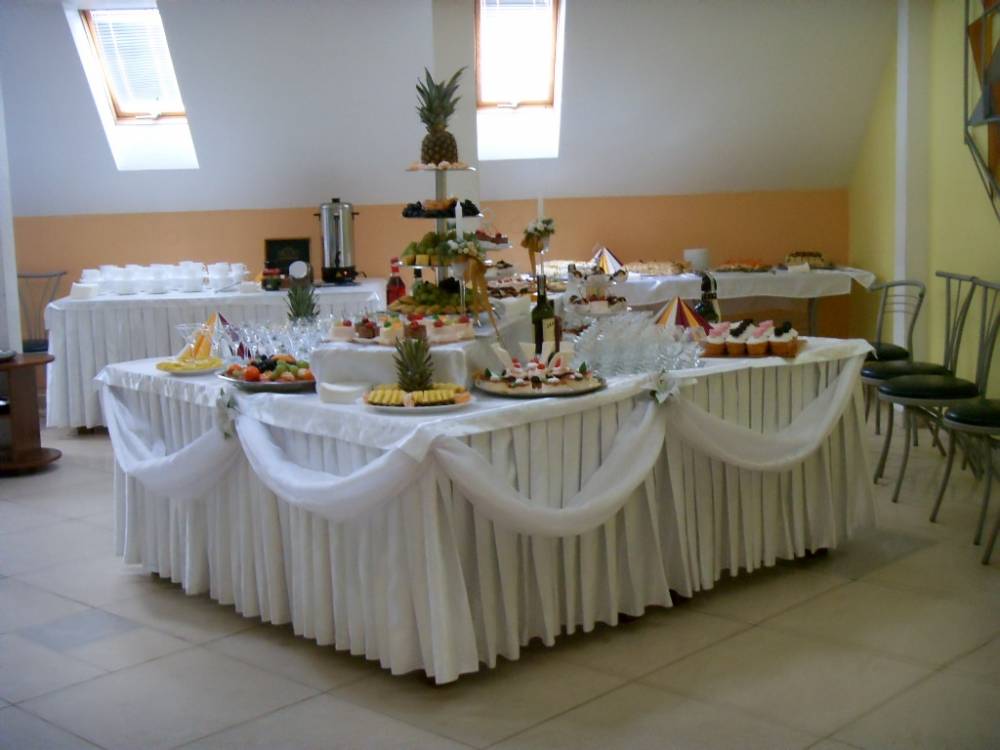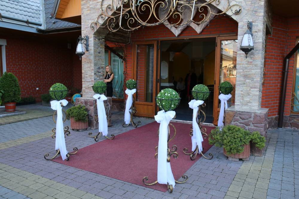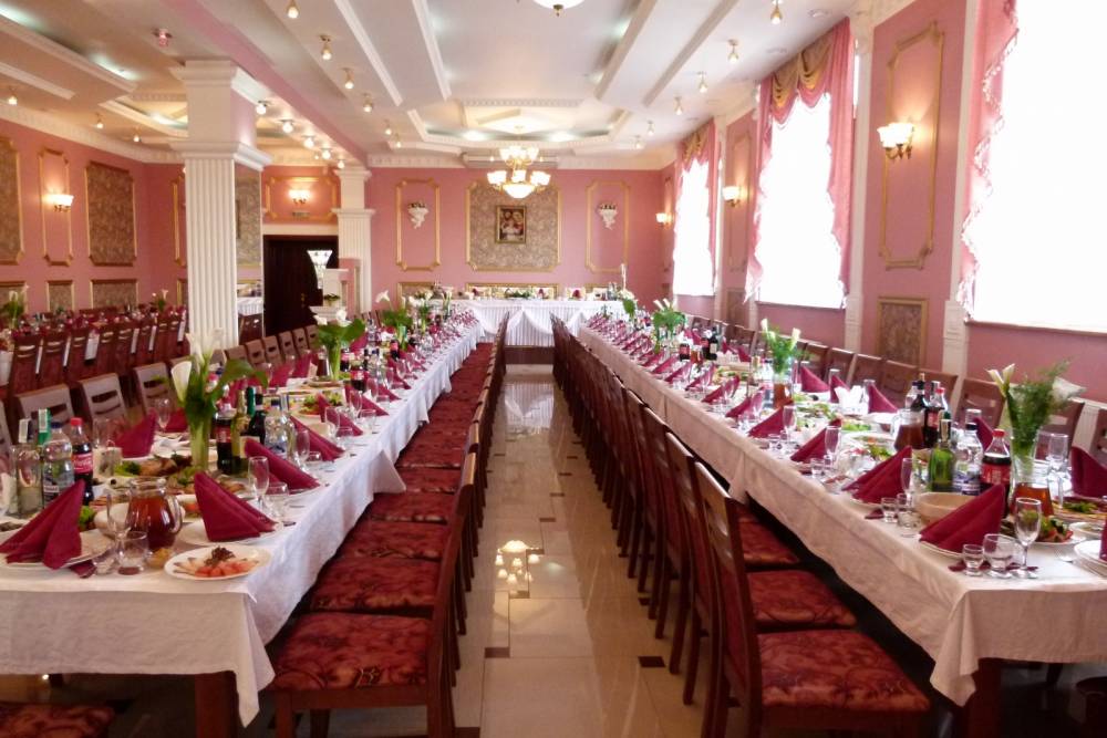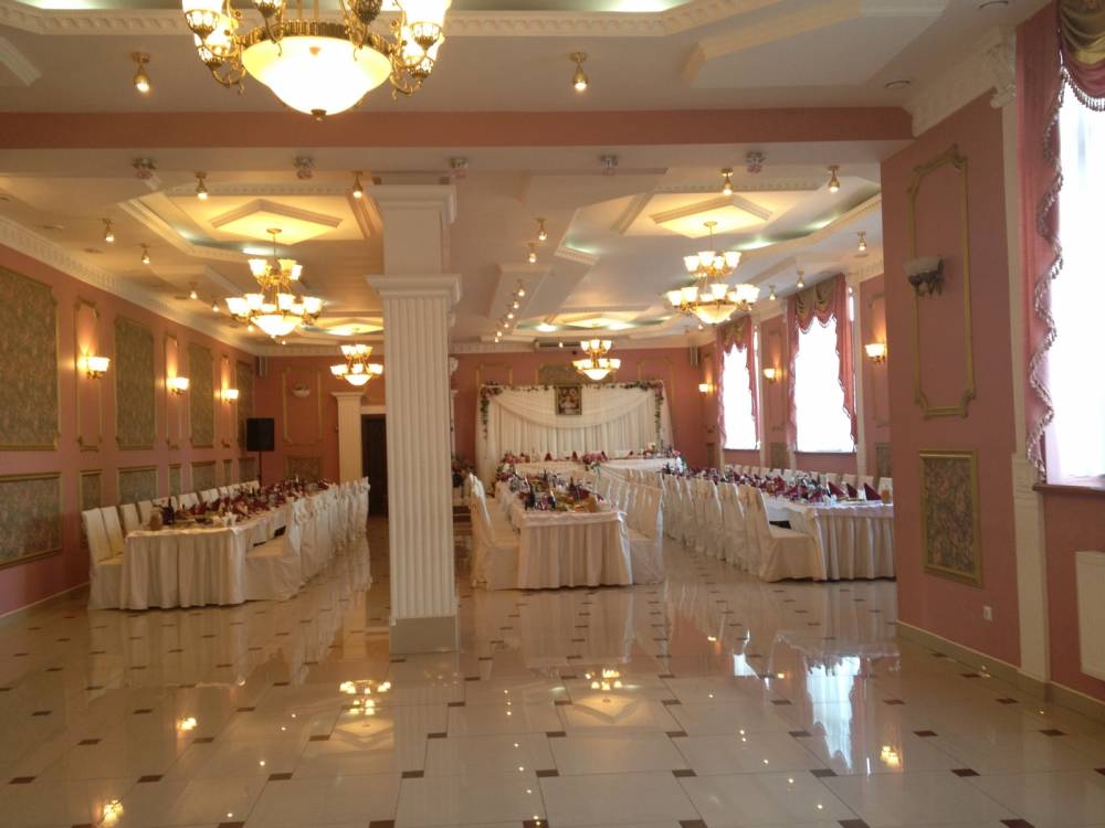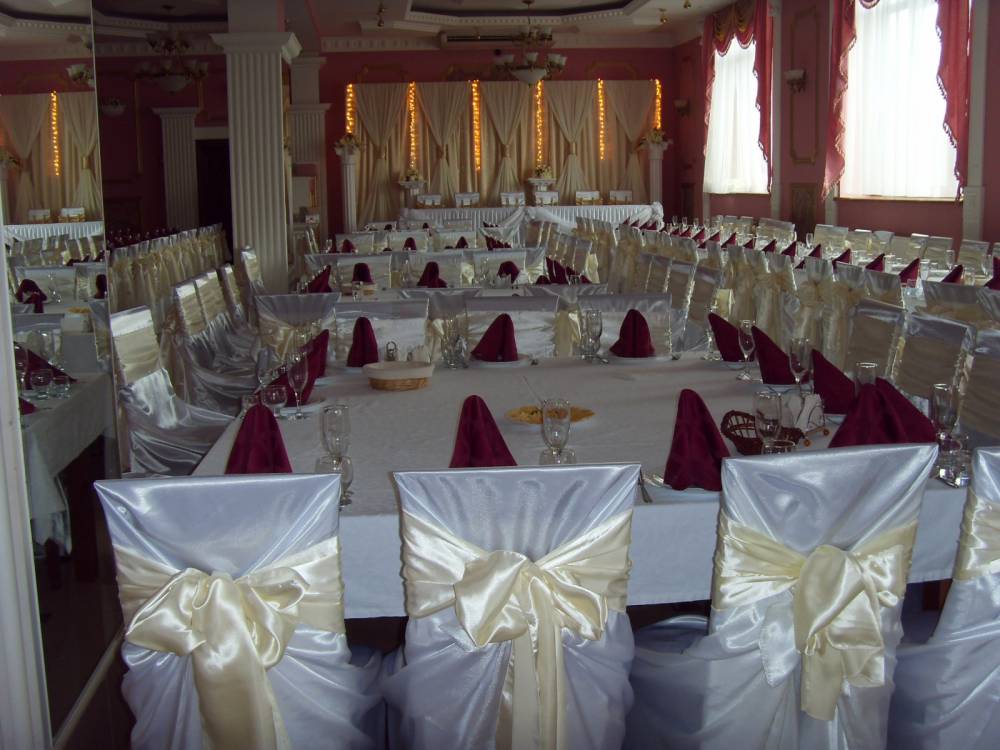 Зал на 300 осіб + окремий фуршетний зал. Безкоштовний паркінг, що охороняється.Безкоштовний Wi-Fi в усіх залах ресторану.Відпочинкові номера, VIP номер для молодят. Знижки з листопада по травень на святкування весіля та інших урочистей.Знижки для дітей 50%.