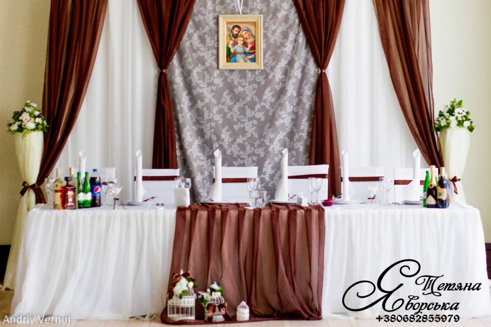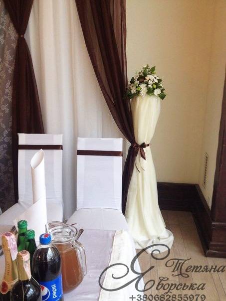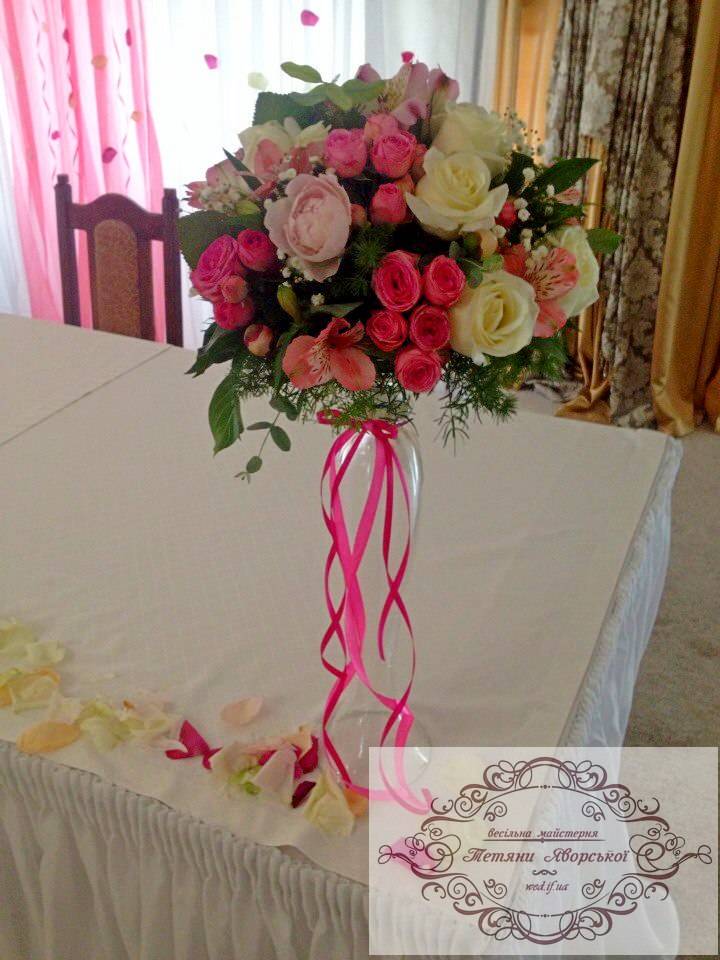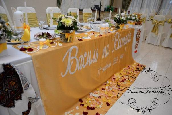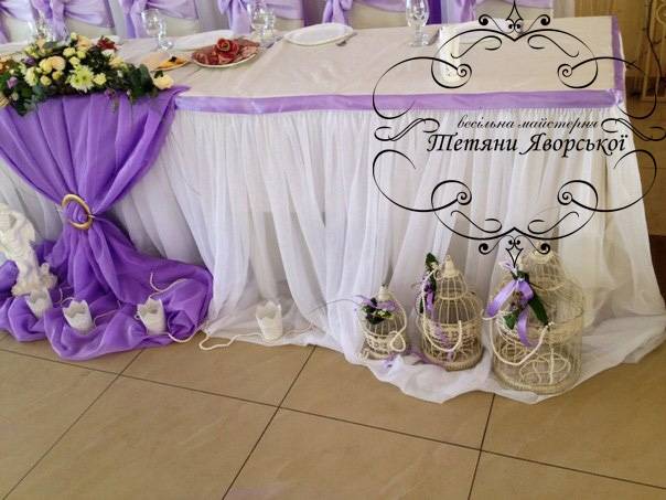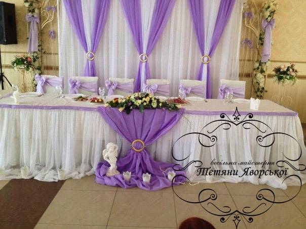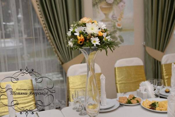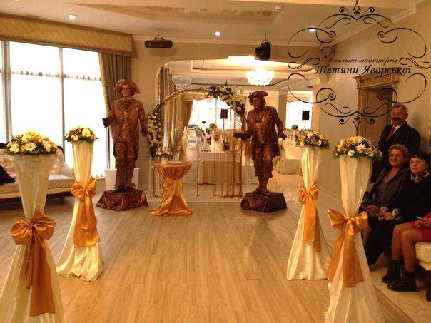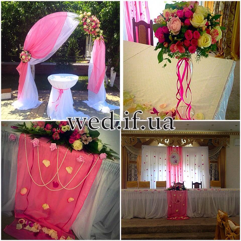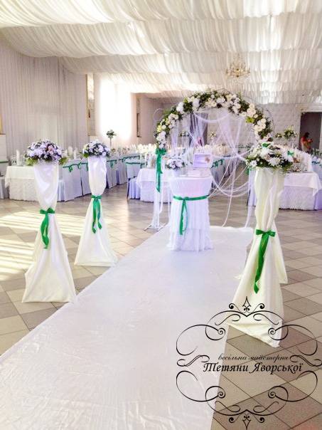 Ми пропонуємо весь спектр весільних послуг. Оформлення весільного залу від 1000 грн; Наша майстерня спеціалізується на таких весільних послугах як: організація весілля під ключ; організація та оформлення виїзної церемонії; весільна флористика; весільний координатор; весільний кортеж; оформлення фотосесій; оформлення фуршетних столів; організація та оформлення першого танцю; оформлення весільного залу; організація освідчень в коханні та романтичних вечерь; весільна поліграфія; солодкі подарунки від наречених; організація шоу-програм; шоколадні фонтани; фруктові фігури; виготовлення та оренда декору; весільні аксесуари.