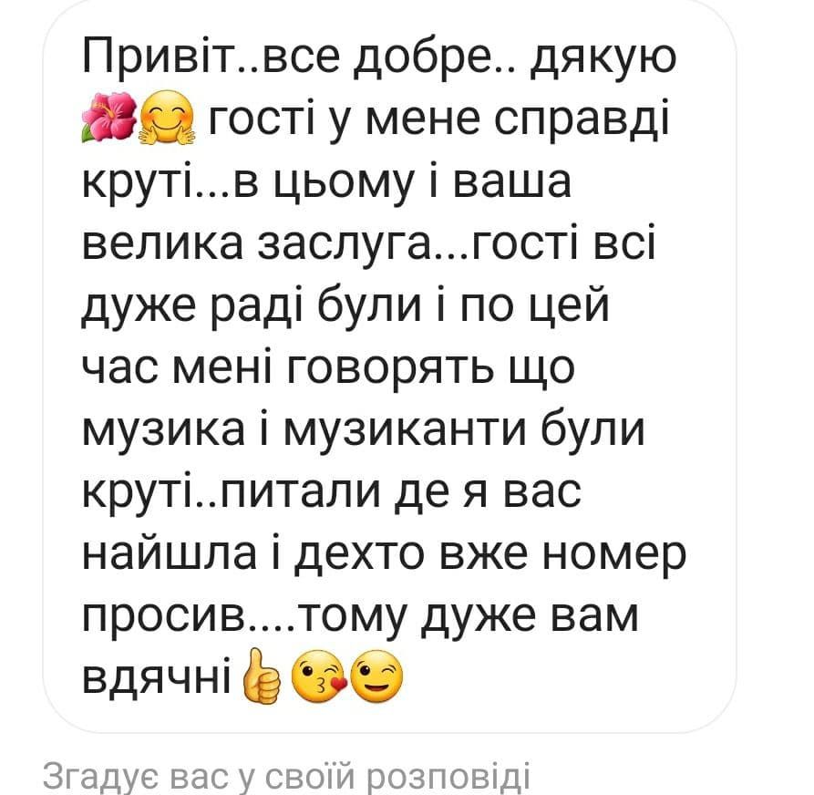 Молодий, сучасний колектив. В роботі використовуємо лише живе звучання. Українська, російська, англійська мови виконання. Найкращі танцювальні композиції від 80-х до останніх новинок Хіт-FM. В наявності світломузика та димове обладнання. Власний транспорт розв'язує руки та ноги на сотні кілометрів. Зробимо свято вашим та особливим))Інста-сторінки:@javvika, @terramuzic