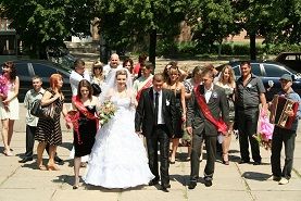 При обслуживании свадебного застолья, я всегда рассчитывал на широкие слои населения, и поэтому, при обслуживании свадеб, юбилеев, и других праздничных мероприятий, расценки приятно Вас удивят. Вас ждёт идеальное сочетание цены и качества обслуживания. Это потому, что я блестяще умею делать своё дело, так как свадьбами профессионально занимаюсь около 30 лет, отработав при этом более 1500 различных праздничных мероприятий (в основном – свадьбы). В отличие от некоторых ведущих – я, не хвастаясь, даю о себе правдивую информацию. Я, Подстрелов Владимир Васильевич, поющий тамада, профессиональный баянист, с абсолютным слухом, по образованию массовик-затейник высшей квалификации, закончил харьковский институт Культуры. До этого закончил музыкальную школу по классу баяна и донецкое культпросветучилище. Сегодня не могут себе позволить некоторые пары пригласить на свадьбу хорошего тамаду по той простой причине, что цены на обслуживание свадебных торжеств сильно завышены. У меня же реальная цена – в 2-3 раза ниже рыночной. И это не говорит о том, что я хуже других, скорее наоборот. Нет ничего такого на свадьбах у других ведущих, чего я при желании не смог бы сделать. Ведь свадьба, всегда индивидуальна и какая программа будет задействована на ней, зависит только от молодых. Дифференцированный подход к каждому празднику, будь-то свадьба, или день рождения, даёт возможность заранее спланировать сценарный план мероприятия. Если свадьба, то молодожёны за неделю до свадьбы могут выбрать из большого множества конкурсов те, что им понравятся, вправе танцевать под ту музыку, какую захотят. И, всё-таки, какая свадьба без баяниста и опытного ведущего-тамады? Лучше не рисковать, и пригласить такого человека. Того, кто не год и не два занимается этой профессией, того, для которого это основная работа и единственный источник дохода. Сейчас развелось бесчисленное количество ведущих. Их плодят институты и колледжи Культуры. И даже в интернете есть двухмесячные курсы ведущих. Так и в нашей жизни - если человек работает на основной работе по восемь часов, а на выходные его приглашают на свадьбу ведущим, да ещё занимается этим он недавно, то это уже далеко не идеальный тамада. Почему? Да потому, хотя бы, что у тамады, который занимается только свадьбами, это его хлеб и основная работа, для творчества у него гораздо больше времени, чтобы заниматься этим более серьёзно. А, если он всю жизнь этим занимается, и ничем больше – у него больше шансов добиться высшего творческого мастерства. Конечно, во всём нужен талант и упорство, трудиться, это главное. И, поэтому, я искренне желаю всем, без исключения, ведущим, певцам и музыкантам творческих успехов, независимо от их возраста, опыта работы и таланта. Но вернёмся к ведущему свадебного застолья. За многие годы работы на свадьбах, мною накоплено достаточно умений, знаний и навыков, которые подразумевают не только мастерское овладение разговорным жанром и правильной реакцией на непредвиденные ситуации, но также знание психологии и создания комфортного праздничного настроения, когда основной задачей является создание тёплой, задушевной атмосферы, когда гости сами охотно раскрывают свои таланты, принимая активное участие во всех мероприятиях проводимых тамадой. Мои конкурентные преимущества помогут Вам сделать правил