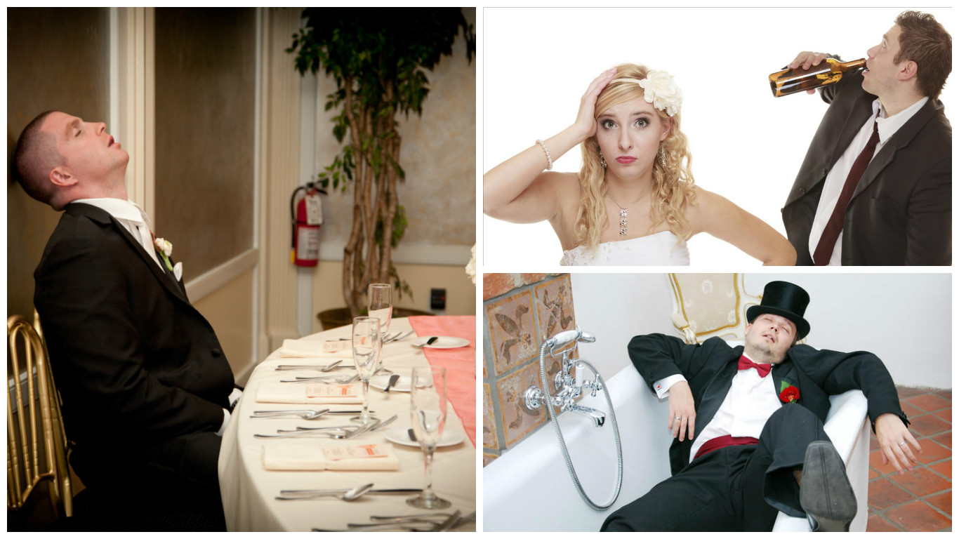 Ми всі знаємо, що день весілля - це стрес для чоловіка, особливо якщо він наречений. Тож почніть пити з самого ранку, бажано разом із своїми друзями, і ви отримаєте потворні світлини і наречену у розпачі, якій важко буде вас пробачити.