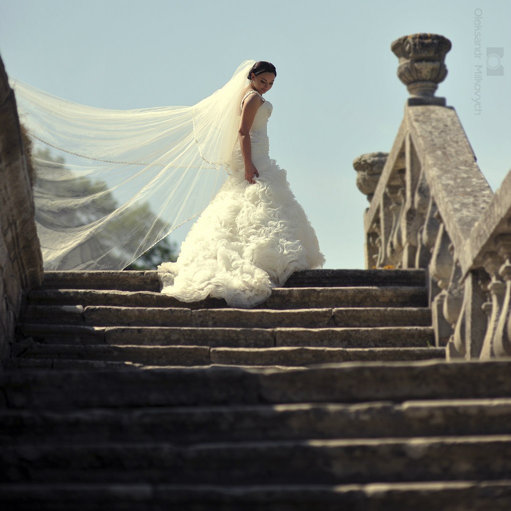 Вдягніть сукню зі шлейфом і нехай ваші подруги не мають поняття, як той шлейф підколоти. Якщо ви не можете зробити і кроку без того, щоб не піднімати сукню або вам постійно потрібна чиясь допомога, якщо хочете постійно мучитися з сукнею, вибирайте найпишнішу і найдовшу, що знайдете у весільних салонах, і тоді ви точно ніколи не забудете своє весілля: хоча б сісти у машину і вийти з неї буде реальним квестом. Тому ми пропонуємо заздалегіть показати подругам, як вправлятися зі шлейфом, а низ плаття закріпіть кількома шпильками, щоб вони були під рукою у потрібний час.