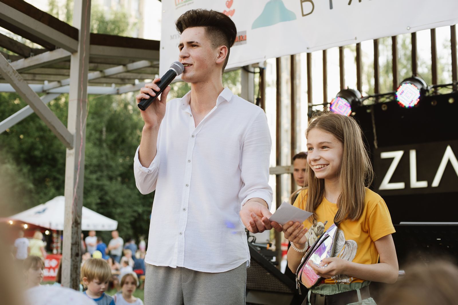 1+1= the best event ever Вже майже півтора роки я працюю у парі із DJ, і повірте, об‘єднатися - було найкращим рішенням. У такій парі є виключно плюси як для мене,так і для вас: • Не потрібно шукати окремо ведучого, окремо DJ - ви вже знайшли чудовий тандем:) (нас) • До свята ми готуємося разом, а отже все проходить ідеально • Доповнюємо один одного і в результаті вражаємо складеністю роботи • Конкурси проходять набагато цікавіше із спеціально підготовленими треками • Та й взагалі, ВДВІЧІ більше позитиву, крутезних емоцій та незабутніх вражень